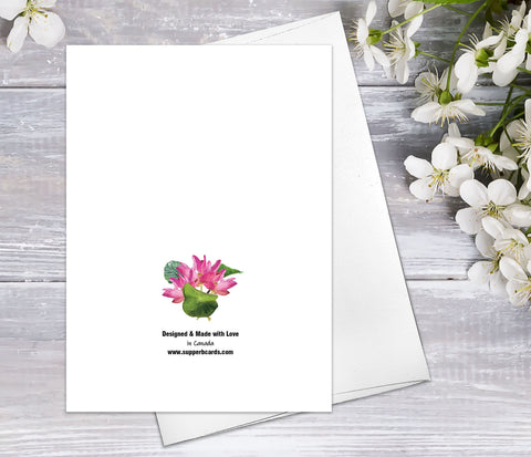 Floral Flower Lotus leaf bouquet Watercolour Card Flower Greeting Cards Lotus Anniversary Mother's day Valentines Day Blank Greeting Card