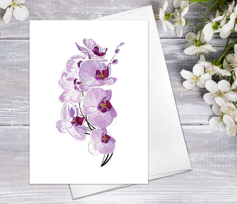 Floral Flower Violet Orchids blossom Watercolour Card Flower Greeting Cards Anniversary Mother's day Valentine's Day Blank Greeting Card