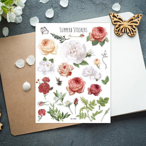 Supperb Bullet Journal Stickers Scrapbook Planner Stickers - Roses Flowers Stickers Flower Bouquet Stickers Custom Window Wall Flower Decals